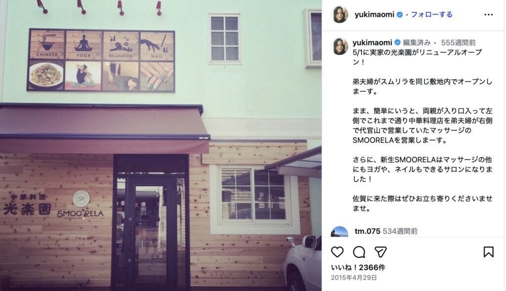 お父様は佐賀県佐賀市で「光楽園」という中華料理屋を経営されています。